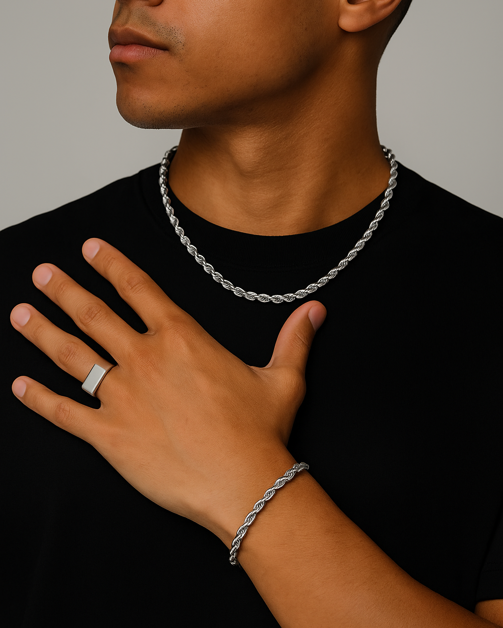 Draag onze Di Aurora 1.7 mm met stijl! De Rope Di Aurora ketting staat voor kracht en veerkracht. Een robuust ontwerp voor mannen die weten wat ze willen. Met een tijdloze uitstraling die past bij iedere outfit. Slijtvast, roestvrij en gemaakt om generaties lang mee te gaan. Weet jij ‘m te dragen?